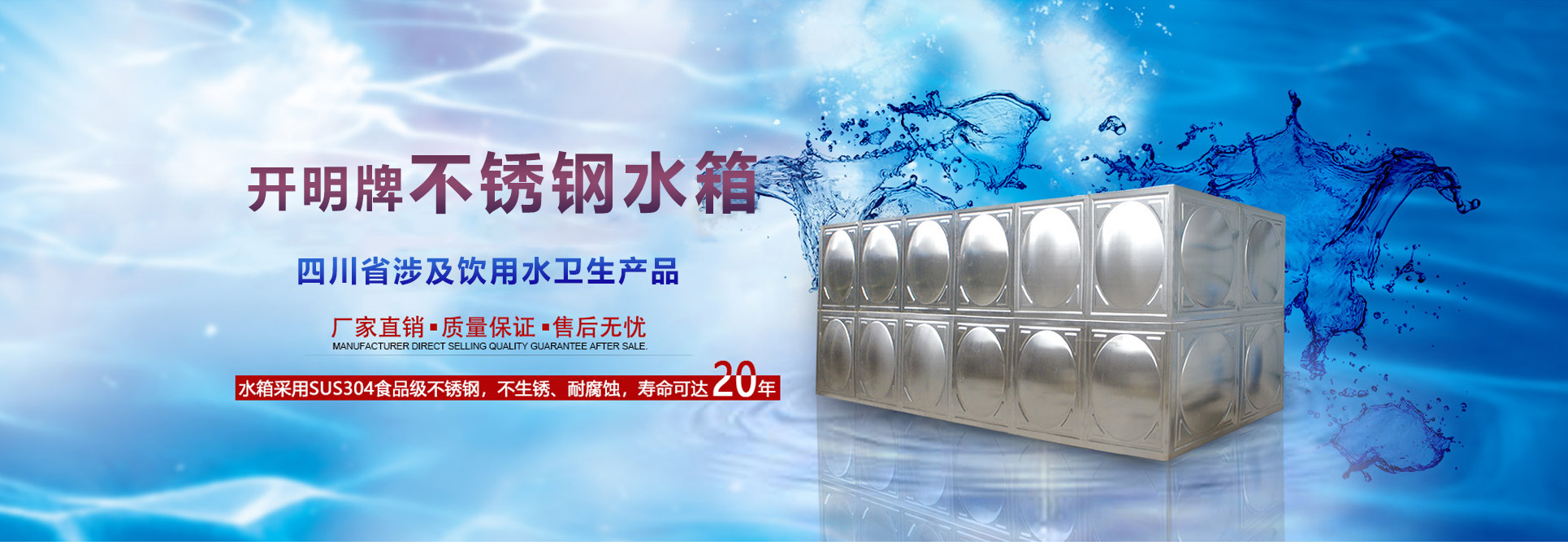 綿陽(yáng)開(kāi)明不銹鋼制品有限公司坐落于享有中國(guó)科技城美譽(yù)的四川省綿陽(yáng)市,是一家集研發(fā)設(shè)計(jì)、生產(chǎn)、銷(xiāo)售、安裝和服務(wù)于一體的供水設(shè)備企業(yè),現(xiàn)注冊(cè)資金五百萬(wàn)元正。 公司前身是2005年成立的綿陽(yáng)市涪城區(qū)開(kāi)明玻璃鋼制品廠(chǎng),2013年變更為現(xiàn)名。成立以來(lái),公司一班人始終不渝地秉持品質(zhì)至上的初心,所有產(chǎn)品均通過(guò)四川省衛(wèi)生部門(mén)和綿陽(yáng)市質(zhì)量技術(shù)監(jiān)督局檢測(cè)合格,并在參數(shù)上嚴(yán)格瞄準(zhǔn)國(guó)家高規(guī)格衛(wèi)生標(biāo)準(zhǔn)。